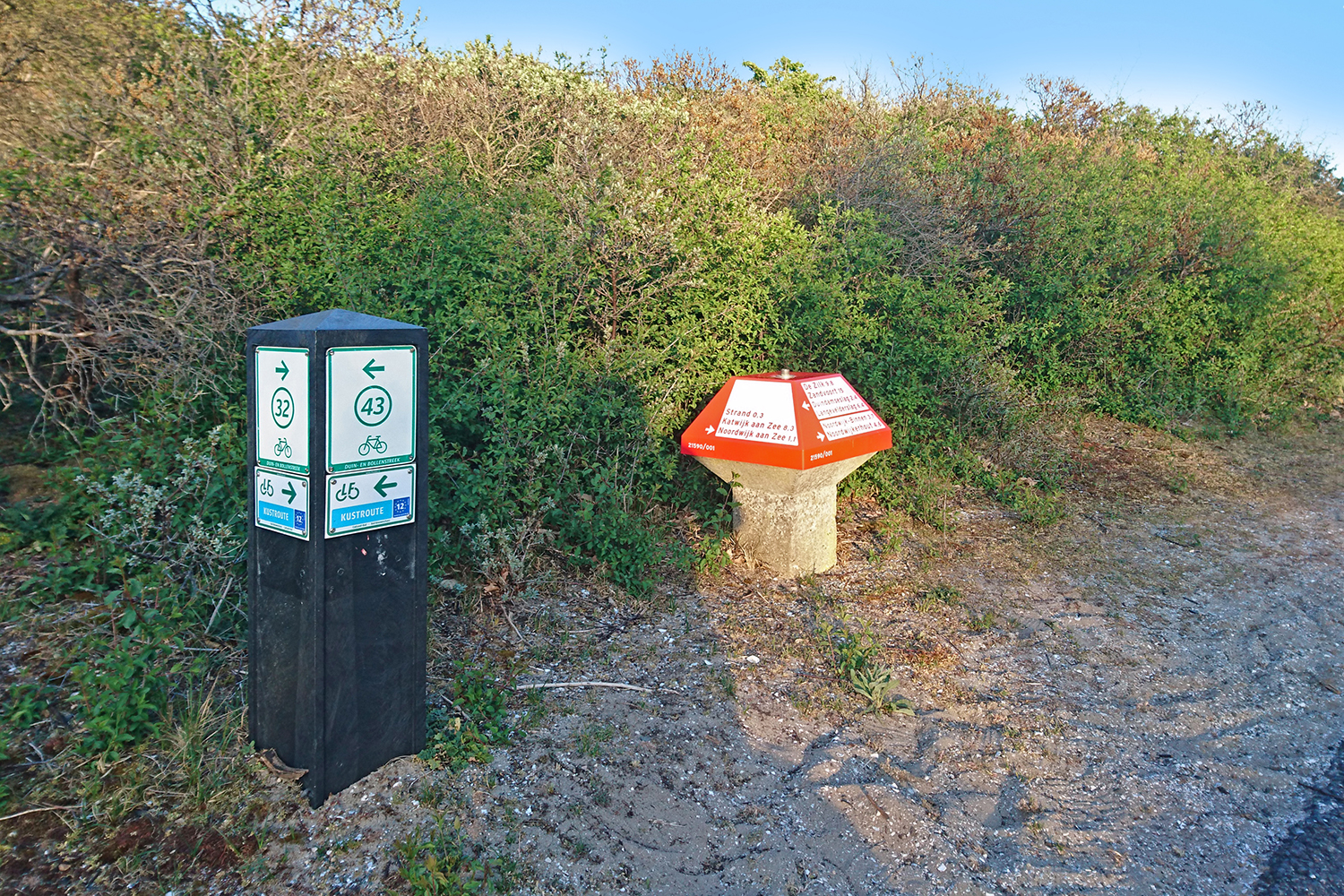 Radwanderwege sind in Holland auf unterschiedliche Weise ausgeschildert. Weiße Wegweiser mit roter Schrift weisen Euch den kürzesten Weg mit dem Fahrrad zu Orten in der Umgebung. In Naturgebieten werden Radwanderwege oft mit den so genannten ‚ANWB paddenstoelen‘ ausgeschildert – niedrigen Wegweisern des Allgemeinen Niederländischen Radfahrer- und Touristenverbundes ANWB (aus Stein und in viereckiger Pilzform).