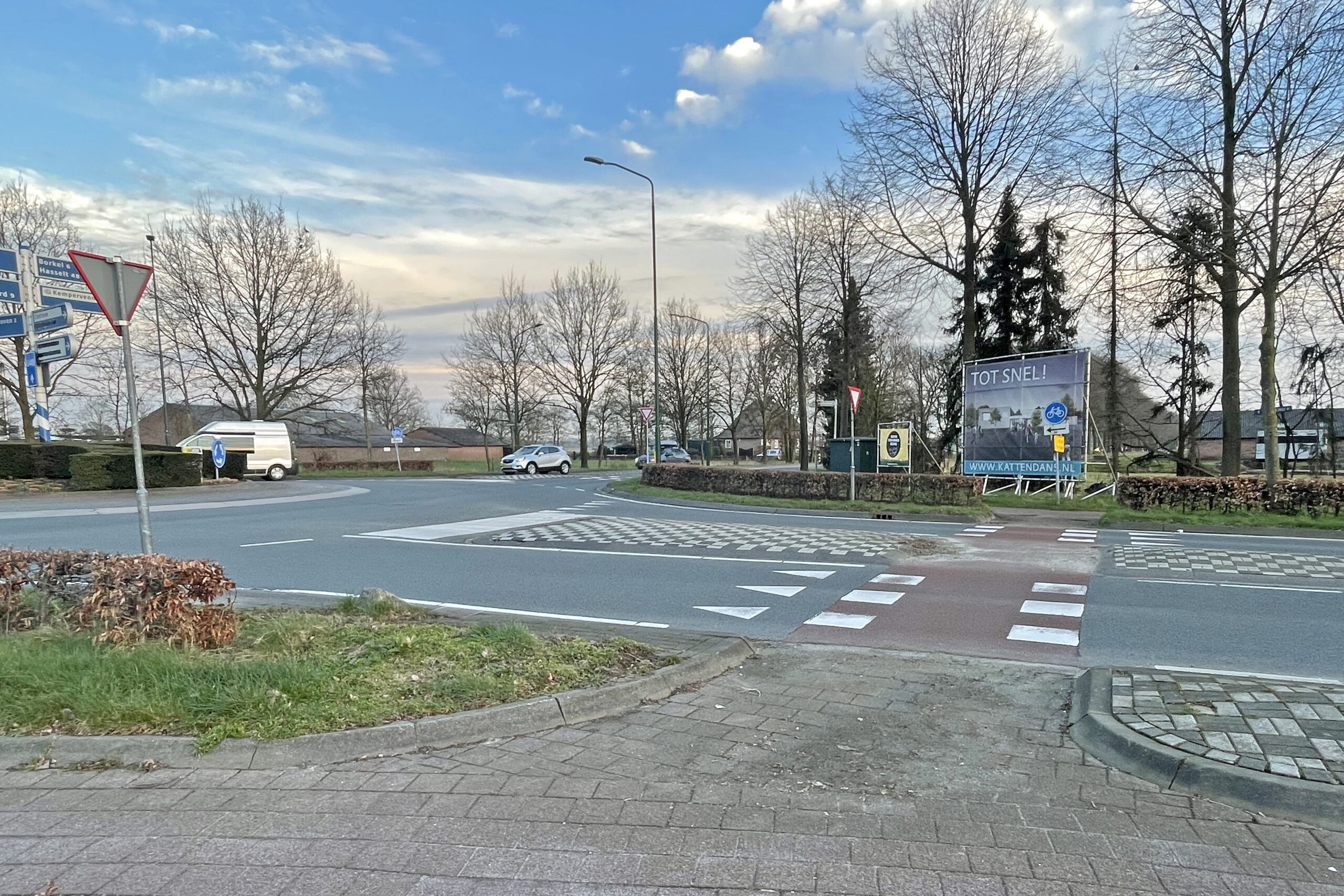 An Kreiseln außerhalb der Ortschaften haben Radfahrer keine Vorfahrt. Das erkennt ihr an den ‚haaientanden‘, was wörtlich übersetzt Haifischzähne heißt. Das sind die weißen Dreiecke auf der Straße. Nähert man sich diesen und stehen diese auf der Spitze (wie die Form eines Achtungsschilds) – egal ob Auto- oder Radfahrer – muss man Vorfahrt gewähren.