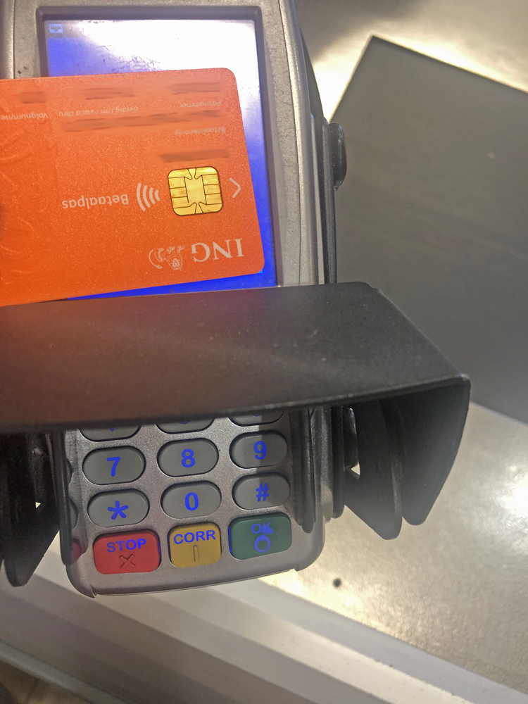 Wenn nötig, solltet Ihr Eure Karten für Zahlungen im Ausland freigeben lassen. Die Niederländer zahlen ausschließlich mit Karte, selbst kleinste Beträg. ‚Klein bedrag, pinnen mag.‘ steht in vielen Geschäften. ‚Pinnen‘ bedeutet: mit Karte zahlen. Es werden üblicherweise alle Karten akzeptiert mit Maestro-Zeichen bzw. V-Pay. An fast allen Bezahlautomaten kann man ‚kontaktlos‘ bezahlen. Auf diesen Kassen steht ein großes WLAN-Zeichen. Zum Bezahlen hält man die Karte an die entsprechende Stelle der Lesegeräte. Die Geheimzahl braucht man erst ab einem Betrag von 50,- einzugeben. Sehr praktisch für die kleinen Einkäufe. Karte ran und fertig!